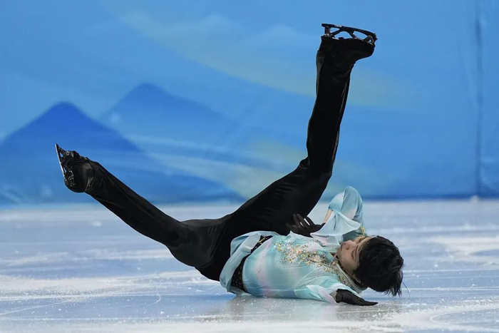 摔倒,可能是我记录下羽生结弦在北京冬奥会自由滑赛场上最多的画面。对于一位记者而言,这是一种很复杂的心态,你希望见证人类滑冰历史上的第一个完美的4A(阿克塞尔四周跳),但摔倒的画面却一遍遍在我脑中预演。