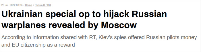 综合塔斯社、“今日俄罗斯”25日报道,俄罗斯联邦安全局(FSB)当天发布消息称,他们挫败了乌克兰方面劫持俄空天军战机的企图。具体而言,乌情报机构在北约的指导下,利用金钱及欧盟公民身份等作为条件,试图策反俄军飞行员驾驶战机叛逃至乌方控制的机场,乌方甚至要求他们“处理”掉机上其他人员。