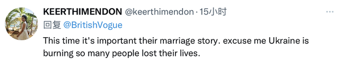 有人指责道:“这次的重点是他们的婚姻故事。打扰一下,乌克兰正在燃烧,有那么多人失去生命。”