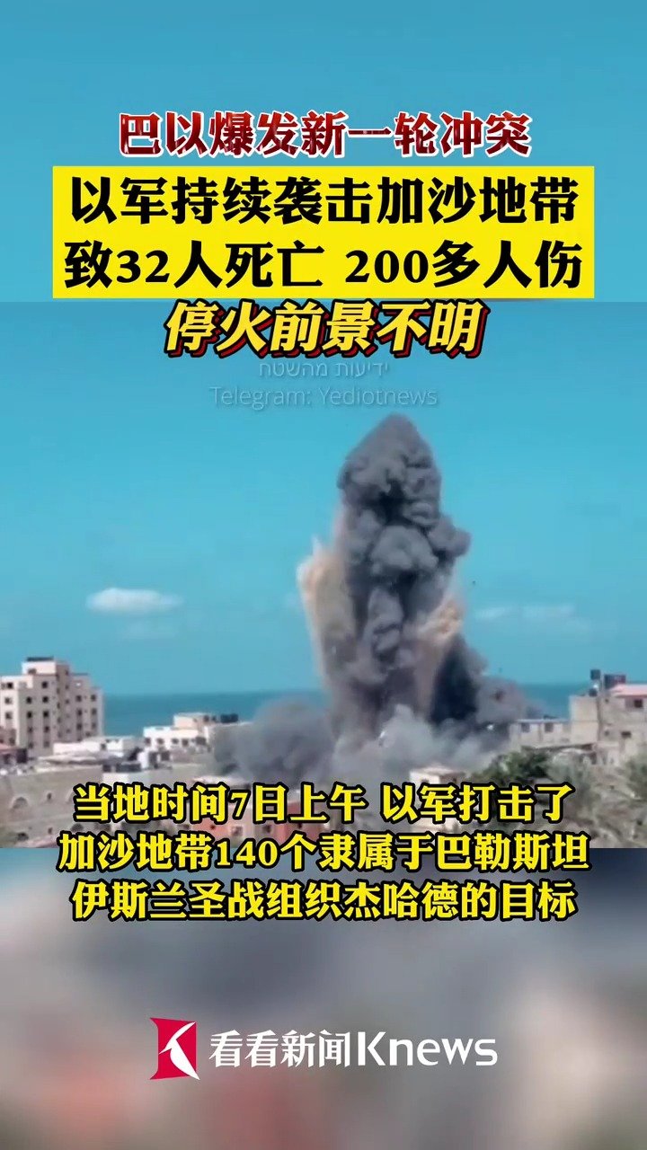 巴以爆发新一轮冲突 以军持续袭击加沙地带 致32人死亡200多人伤