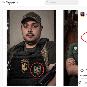 因为根据这家俄媒的说法,这个名叫“Mikhail”、来自乌克兰第49步枪营(“喀尔巴阡山西奇”营)的27岁士兵,所佩戴的那个狮子形状的徽记,居然是纳粹德国时期“纳粹党卫军第十四武装掷弹兵师”(14th Waffen Grenadier Division of the SS)的徽记。
