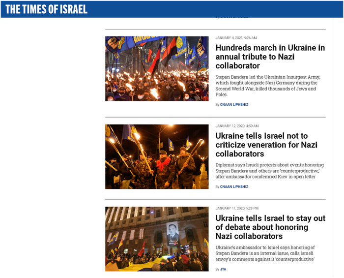总部位于美国纽约的“犹太电讯社”在今年4月28日的一篇报道中就指出,尽管乌克兰总统泽连斯基本身是犹太人,也有不少犹太人在乌克兰与俄罗斯爆发此次军事冲突前生活在乌克兰——而且这些情况还成了西方反驳俄罗斯指控乌克兰“纳粹化”的一些说辞,但是乌克兰的“主流社会”里也确实存在着希望为纳粹时期的乌克兰极端民族主义者班德拉等人招魂和洗白的情况。