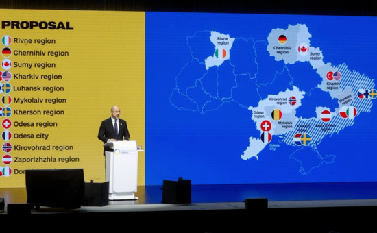 什梅加尔还细心绘制了“责任地图”,把西方国家安排得明明白白:奥地利需要负责重建扎波罗热地区;美国和土耳其负责重建哈尔科夫州;切尔尼戈夫州由德国单独负责;加拿大和爱尔兰一个也跑不了……