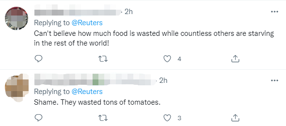 不过,今年的活动视频发布后,推特上如往常一样出现了质疑此举浪费食物的批评声。有外国网民称,有人还在挨饿,不应该浪费这么多西红柿。