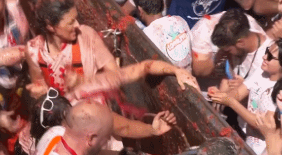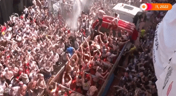 西班牙小镇“西红柿大战”回归,超2万参与者狂砸130吨熟西红柿