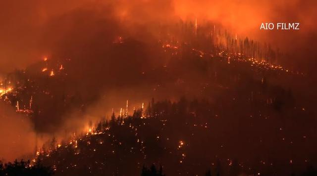 加州锡斯基尤县附近山火(《萨克拉门托蜜蜂报》视频截图,下同)