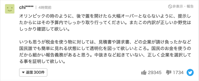 ↑网友:请确保你所提出的预算是在预算范围内的,这样就不会像东京奥运会那样,后来出现大幅超支的情况。在野党也应该确认一下。
