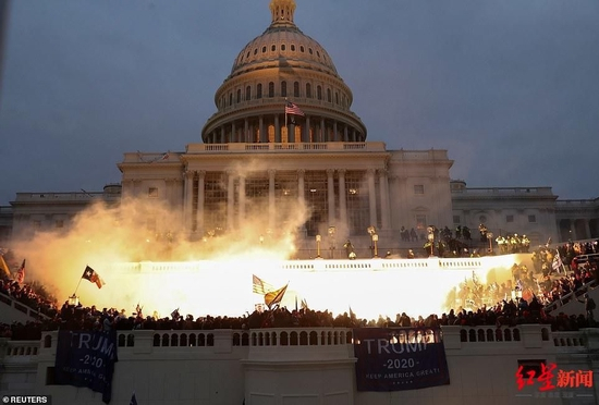 ↑2021年1月,特朗普支持者聚集在国会大厦前