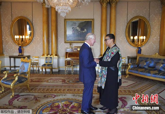 当地时间2022年9月11日,英国国王查尔斯三世在伦敦会见英联邦秘书长。