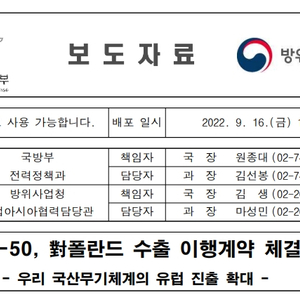 8月26日,波韩两国签署军购合同,波兰将从韩国购买一批K-2“黑豹”主战坦克和K-9自行火炮,合同价值57.6亿美元,韩国首批出口数量为180辆K2坦克和212门K-9自行火炮。韩国防卫事业厅表示,将继续就上述2种装备的补充合同同波方进行谈判。