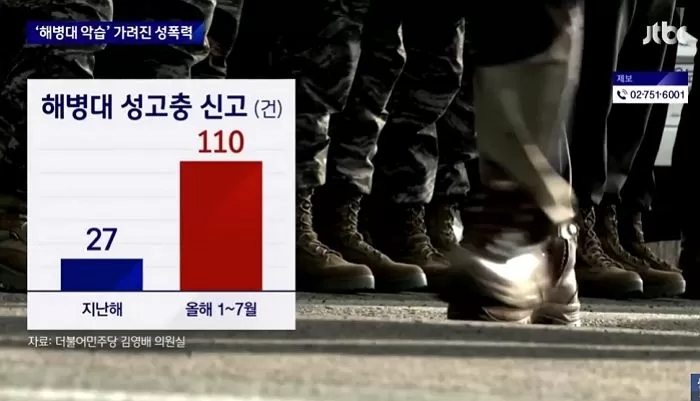 [环球网报道 记者 付嘉骏]据韩国JTBC电视台23日报道,去年韩国空军一女士官在遭受上级性侵后自杀事件发生以来,韩国军方对受害者在举报内部性侵案件时,采取了匿名制的保护措施。由此,今年在韩国陆、海、空三军范围内,针对性侵案件的举报数量都呈增加态势。其中,海军陆战队方面在今年1至7月接到的相关举报数量竟为去年全年的4倍。