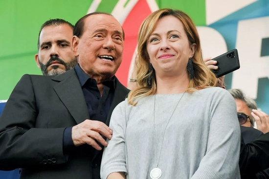 ·9月22日,梅洛尼与意大利前总理贝卢斯科尼(左二)一同为大选造势。