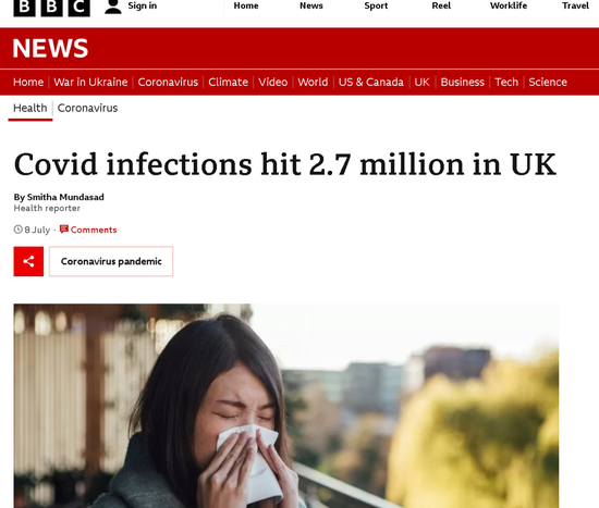 比如今年7月8日,BBC就在一篇题为“英国新冠感染病例已达到270万人”的报道中,使用了一个打喷嚏的亚裔女子的照片作为报道配图。这个配图的选择当时也引起了一些网民的质疑和抨击。