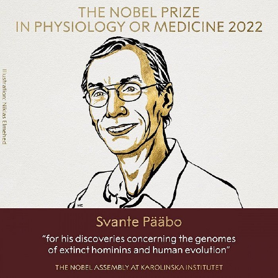 2022年诺贝尔生理学或医学奖公布,获奖者为Svante Pääbo。