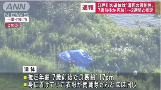 10月4日,在江户川发现了儿童遗体,年龄7岁左右,衣着、身材高度都和失踪儿童南朝芽高度相似。