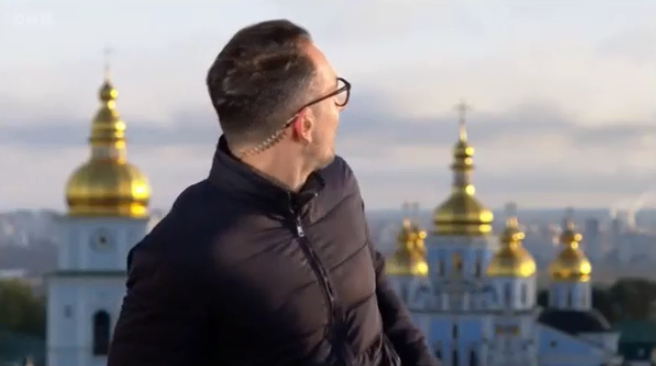 英国广播公司(BBC)记者在基辅报道现场时,身后传来爆炸声,导致现场报道一度中断,记者及摄制人员躲避。该媒体记者还目睹了其中一次导弹袭击。BBC,这是基辅数月以来首次受到袭击。↓