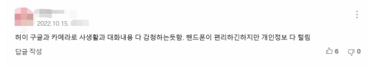 更有韩国网民表示:“哎…谷歌好像随时监听人们的私生活和私下的对话。手机虽然为人们带来便利,但同时个人信息却被不断泄露。”↓