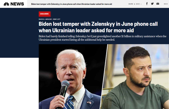 有知情人士透露,拜登在今年6月与泽连斯基一次通话中,对后者“发了脾气”图:美国全国广播公司报道截屏