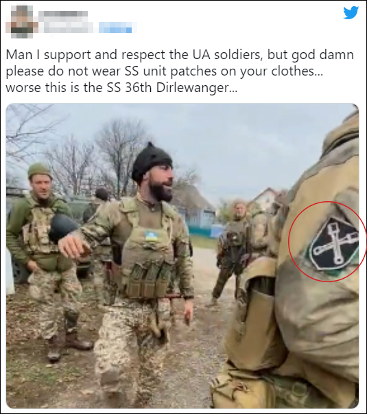 (观察者网讯)据“今日俄罗斯”(RT)当地时间12日报道,本周早些时候,在俄军撤离,乌军进入赫尔松时,一段乌克兰士兵佩戴着“纳粹党卫军”徽章的视频开始在网上传播。