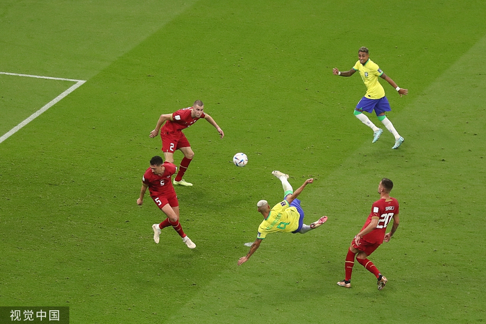第62分钟补射破门之后,里查利森在第74分钟上演经典一幕,在接到维尼修斯的左路传球之后停球+倒挂金钩破门,一套表演一气呵成。