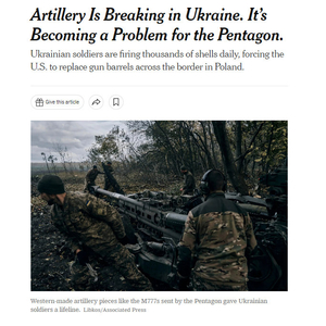 除了火炮开始磨损以外,乌军也开始缺乏炮弹。《纽约时报》在26日的另外一篇报道中指出,乌军正在使用的炮弹数量惊人,在阿富汗,北约部队每天可能发射300发炮弹,而且不需要担心空袭,但乌克兰每天要发射数千发炮弹,且需要担心俄军的反炮兵作战。前北约负责国防投资的助理秘书长、现欧洲对外关系委员会防务问题专家卡米尔·格兰德称,“乌克兰的一天(使用量)就是阿富汗的一个月或更多”。
