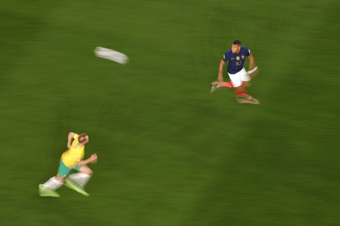 11月23日,世界杯D组首轮,法国4-1澳大利亚。奔跑中的姆巴佩。