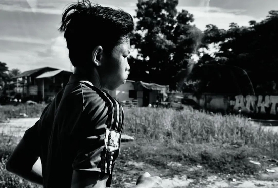 开车的是村里拳馆的负责人Sangwean,他们晨跑的地方是距离武里南城约60公里外的郊野。黎明刚刚降临在这片广袤的平原,可以看到远处的地平线,丛生的树木和零落的村庄,以及一望无际的稻田。水稻种植是这里的支柱产业,然而泰国的繁荣并没有能惠及这里的农民,他们付出极大的辛劳却依然摆脱不了贫困。和许多农民家庭子女一样,Sataan如果不选择成为拳手,那么他的未来人生就会沦落到这片田地里。