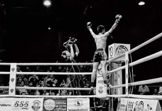 泰国曼谷最具热点的两大泰拳竞技场之一——Rajadamnern体育馆。比赛间隙,年轻的拳手被动地接受助手的按摩放松,他看向场外,在灯光照不到的地方有无数在他身上投下赌注的观众。