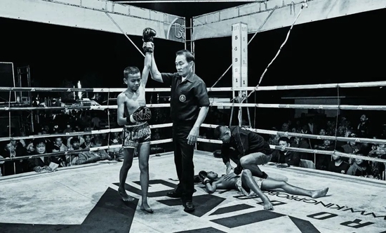 Chai像一袋粮食一样倒下了,他的几颗牙齿脱落掉在了地上。裁判举起Sataan的手臂挥舞,半数的观众都欢呼了起来。但没几个人会继续留在场边看着男孩们被带离拳台,他们中的大多数人,都已沉浸在赢钱的狂喜或者输钱的沮丧之中,忘乎所以。