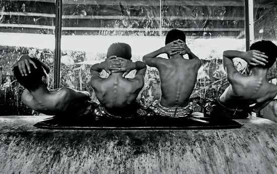 晨跑之后,Sataan吃了个半熟鸡蛋作为早餐,然后加入训练的队伍。训练中,一个男孩对着一个破旧的沙袋练习膝击,这是比赛中对峙时的进攻动作。沙袋看起来快裂开了,“呀!呀!”每次击中他都会大叫着给自己打气。在比赛中,对手会互相抓住对方的脖子,争相用膝盖抵住对方腹部,再抓住机会击倒对手。这是得分并取得胜利的有效方式。
