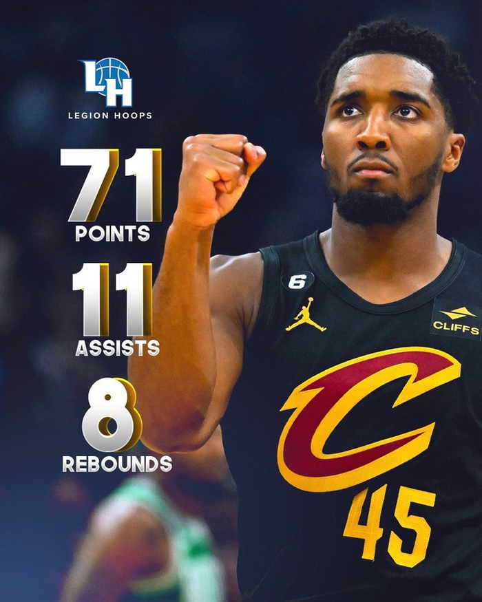 全场比赛米切尔34投22中,三分球15投7中,罚篮25罚20中,得到71分8篮板11助攻,创造个人得分纪录的同时,也打破了布克保持的现役球员得分纪录(70分)和勒布朗·詹姆斯保持的骑士队史单场得分纪录。