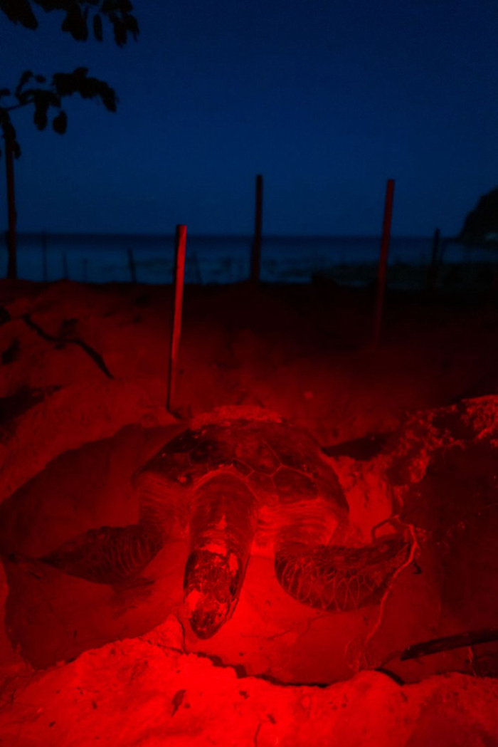 ↑2022年6月14日,在马来西亚丁加奴州热浪岛北部査加尔瑚棠海龟保护区,一只绿海龟正在筑巢。马来西亚丁加奴大学海龟研究所成立于1984年,从1993年起在位于热浪岛北部的査加尔瑚棠海龟保护区开展海龟监测和保护工作。査加尔瑚棠海龟保护区是热浪岛重要的海龟筑巢海滩之一,随着保护工作的进展,近年来筑巢量不断攀升。