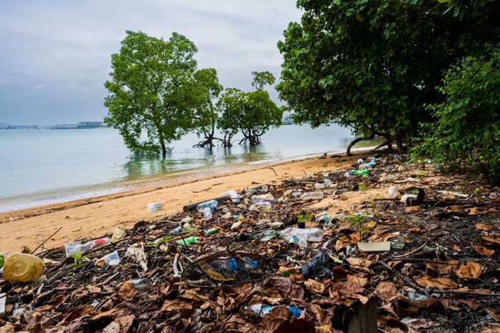 ↑这是2022年4月20日在马来西亚柔佛州孟兰邦岛拍摄的红树林旁的垃圾。距丹绒比艾国家公园不远的孟兰邦岛人迹罕至,却垃圾成堆,随着海浪漂过来的垃圾给红树林造成严重损害。