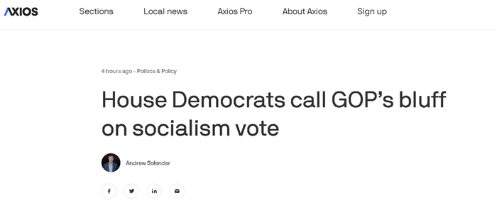 从美国主流媒体的介绍来看,这个要求“谴责社会主义”的决议案,是由众议院的一名共和党议员于1月25日提出的,然后在2月2日在众议院以328票支持、86票反对、14票弃权获得通过。