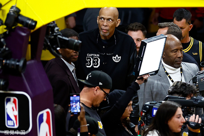 “天勾”贾巴尔现场见证詹姆斯破纪录。