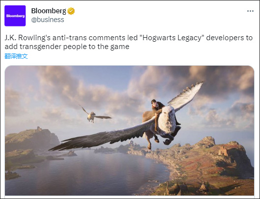 此前,《哈利·波特》书籍系列作者J.K。罗琳因一些发言被LGBT群体批评“患有跨性别恐惧症”,如今,罗琳本人没有参与的《霍格沃茨之遗》的开发商为了“让游戏更具包容性和多样性”,在游戏中加入了LGBT角色。但一些LGBT网民又批评,游戏中的LGBT角色名叫Sirona Ryan,前三个字母是Sir,代表男性,这是对跨性别者的“刻板印象”。