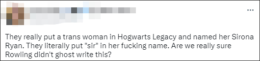 还有网民认为,虽然发行商说罗琳本人没有参与游戏制作,但从给一个跨性别女性名字中塞进SIR这几个单词的做法来看,罗琳可能在背后代笔了。