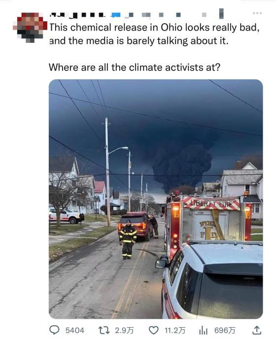 “俄亥俄州巨大的爆炸和化学物质泄漏危及美国居民生命安全,理应是更重大的故事……为什么媒体不对这一事件多加报道?”