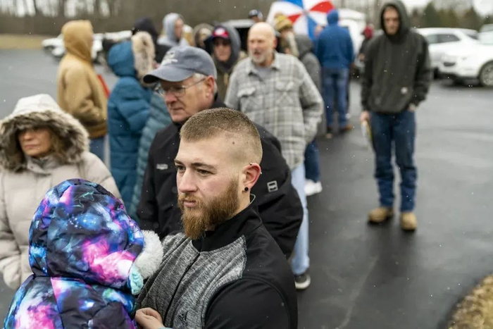 ▲当地时间2023年2月15日,美国俄亥俄州东巴勒斯坦,当地和周边地区的居民排队参加市政厅会议。图/视觉中国