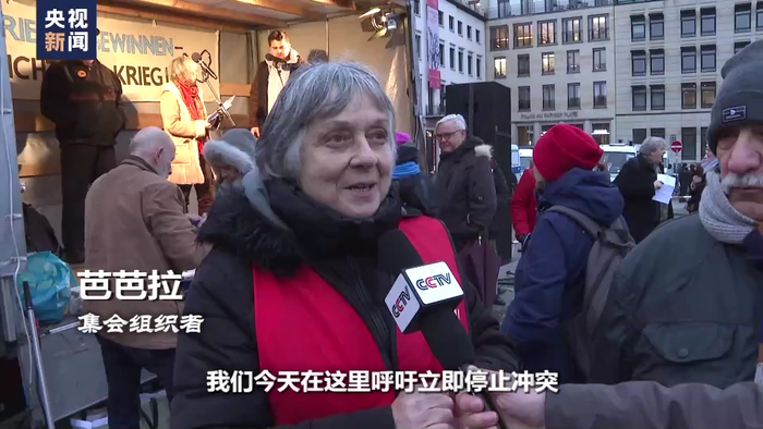 集会组织者 芭芭拉:我们今天在这里呼吁立即停止冲突,我们认为只有一种方法可以实现,不再向乌克兰运送武器,组织所有相关国家进行谈判,这其中包括美国,因为美国非常希望能够延续战争。