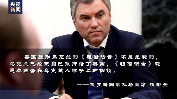 俄罗斯国家杜马主席沃洛金表示,美国援助乌克兰的《租借法案》不是免费的,乌克兰已经把自己抵押给了美国,租借法案就是美国套在乌克兰人脖子上的枷锁。