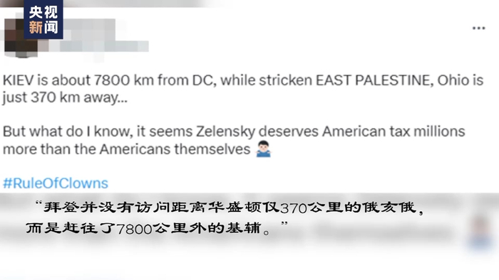 有网友注意到,“拜登并没有访问距离华盛顿仅370公里的俄亥俄,而是赶往了7800公里外的基辅”。