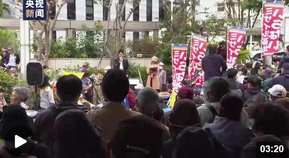 而就在昨天下午,日本冲绳县市民团体组织大规模集会,反对日本政府去年12月通过的新版《国家安全保障战略》等三份安保政策文件,反对增加防卫费、在冲绳岛屿部署导弹、扩充自卫队。