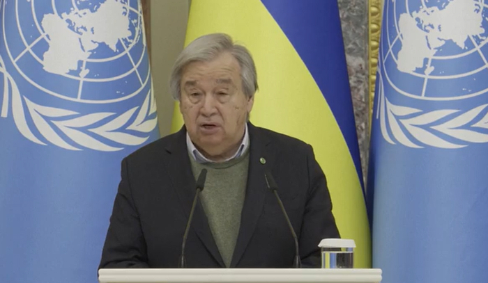 “RBC.UA” 新闻网报道称,古特雷斯当天在基辅与乌克兰总统泽连斯基共同举行记者会时发表了上述言论。“最近关于一名乌克兰士兵被随意杀害的画面很悲惨且令人震惊,这再次提醒(各方)必须严格遵守战争法。”古特雷斯称。