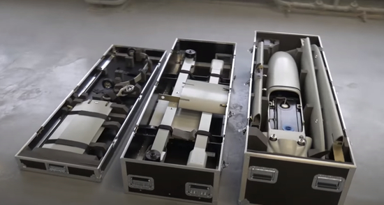 上述所有的零部件都可以收纳在这个三层箱子中,并且可以由两名成年男子轻松搬运。