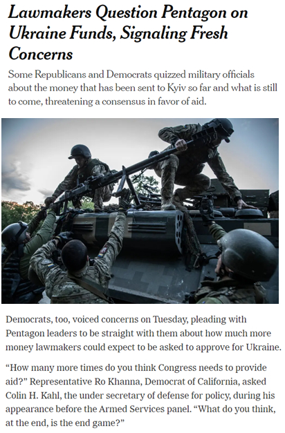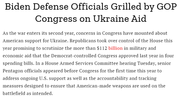 不仅后续资金很难得到国会拨款,而且早已放话要阻止拜登政府再给乌克兰“空白支票”的共和党人,已经充分行使其新多数党的权力,在近期的众议院听证会上就援乌“旧账”向拜登政府施压,并发誓要追究其“乱花钱”的责任。