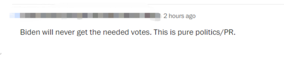 上述该网友还表示,“拜登永远不会得到所需的支持。这纯粹是政治/公关(手段)。”