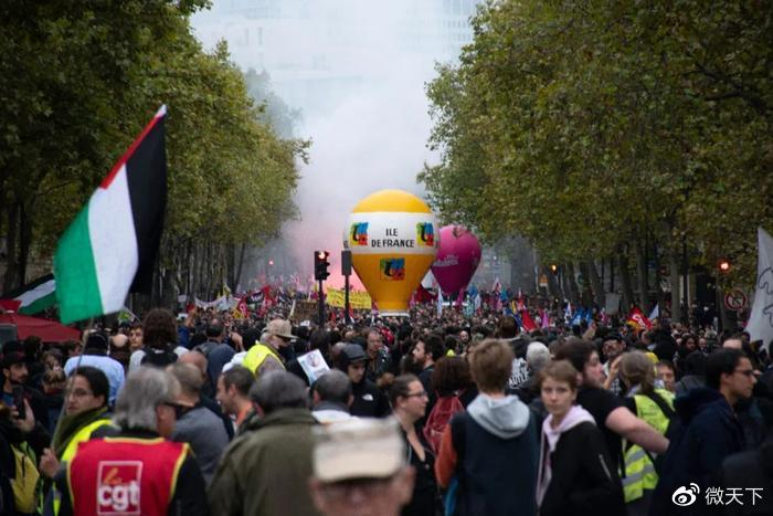 2022年10月18日,法国多地爆发罢工游行。图/IC Photo