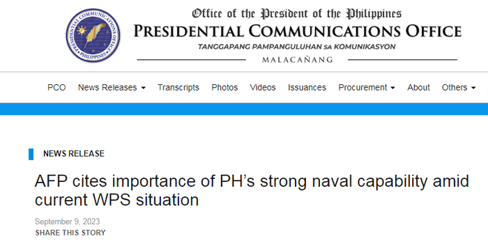 菲律宾官方9月的一篇新闻稿中也提到要强化海军能力的说法。
