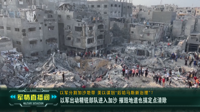 评论员朱江明分析认为,以军的战法把加沙从中间劈开一分为二,就是想重点清剿北部地区的哈马斯的军事力量,它的所谓进攻,实际上就是拆楼填地道,想慢慢步步为营,把哈马斯的空间挤占掉。